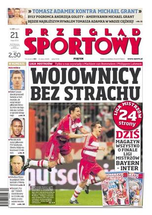 Krach finansowy klubów w 1. i 2. lidze jest szansą na wzmocnienie naszych drużyn; Kamil Kosowski i Paweł Golański wolą szukać klubów na południu Europy niż w polskiej ekstraklasie; wywiad z Michałem Probierzem, trenerem Jagiellonii Białystok; transfer Roberta Lewandowskiego do Borussii Dortmund ciągle niepewny; nie Evander Holyfield, lecz pogromca Andrzeja Gołoty zmierzy się wkrótce z Tomaszem Adamkiem; w Muszynie miała być wielka feta, a było wielkie rozczarowanie; francuski zespół przekonuje Roberta Kubicę, by został w Renault; Dunce polskiego pochodzenia znów nie udało się wygrać turnieju w Warszawie; Rosja – Niemcy i Szwecja – Czechy w półfinałach mistrzostw świata w hokeju na lodzie; Tomasz Gollob chce w sobotę odnieść sukces w Grand Prix Czech w Pradze.