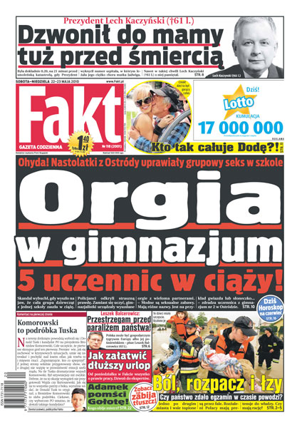Orgie w gimnazjum w Ostródzie – 5 uczennic zaszło w ciążę; czy państwo zdało egzamin w czasie powodzi; prof. Leszek Balcerowicz o gospodarczych konsekwencjach wyborów prezydenckich; ostatnia rozmowa prezydenta Lecha Kaczyńskiego; wstrząsająca relacja pilota, który lądował w Smoleńsku przed katastrofą; jak zabija nadmiar tkanki tłuszczowej.