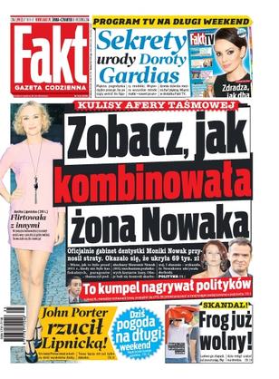 Jak kręciła żona Nowaka; Marek Belka tłumaczył się radzie; ABW ostrzegała Tuska; Robert Sowa dla Faktu; Kwaśniewski tyje ze stresu; pirat z BMW już na wolności; mama Oliwki będzie bronić męża; prognoza pogody na długi weekend; Porter rozstał się z Lipnicką; legendarny napastnik Realu Madryt i Interu Mediolan gorąco wierzy w awans swoich rodaków do 1/8 finału mistrzostw świata; mierząca w mistrzostwo świata Brazylia zatrzymana przez Meksyk; jak Niemcy oglądają mundial.