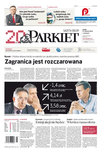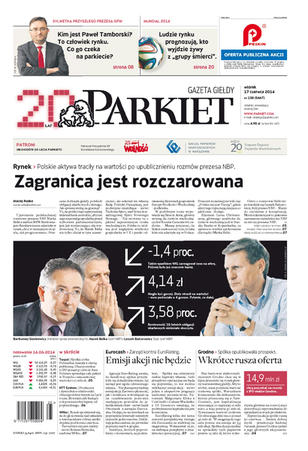 Największy w Polsce newsroom gospodarczy zbiera, analizuje i zgłębia dla Państwa najważniejsze informacje ze świata finansów. Codzienne wydanie „Parkietu”, sześć dni w tygodniu, to kilkadziesiąt artykułów o emitentach, instytucjach finansowych, gospodarce. To również opinie, felietony i wywiady z najważniejszymi ludźmi krajowej i globalnej finansjery.