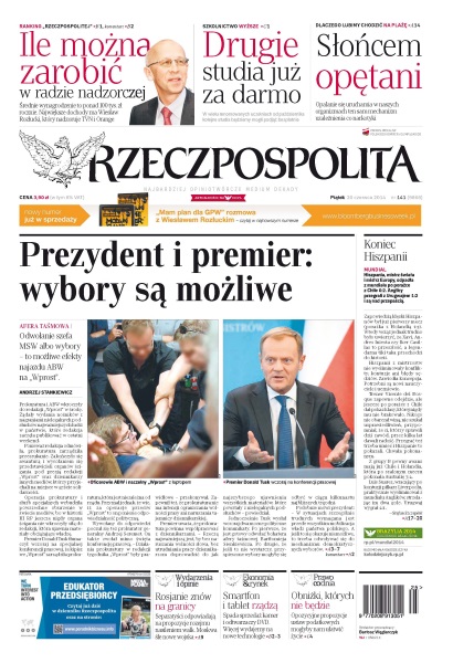 Odwołanie szefa MSW albo wybory – to możliwe efekty najazdu ABW na „Wprost”; w wejściu do „Wprost” bulwersuje dysproporcja między ściganym czynem a ingerencją w media; separatyści odpowiadają na propozycje rozejmu nasileniem walk - a Moskwa wysyła nowe wojska w pobliże ukraińskiej granicy; po 12 latach spektakularnych sukcesów skrajnej prawicy Holendrzy są zmęczeni populizmem; opalanie się uruchamia w naszych organizmach ten sam mechanizm uzależnienia co narkotyki; piłkarz Realu Madryt to podstawowy atut Francji w ataku - strzelił już na mundialu dwie bramki; Chile po dwóch meczach jest już w 1/8 finału - drużyna, która odebrała broniącym tytułu Hiszpanom szansę na wyjście z grupy, powstawała siedem lat.