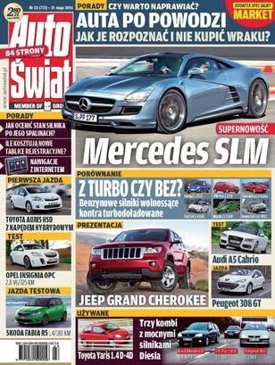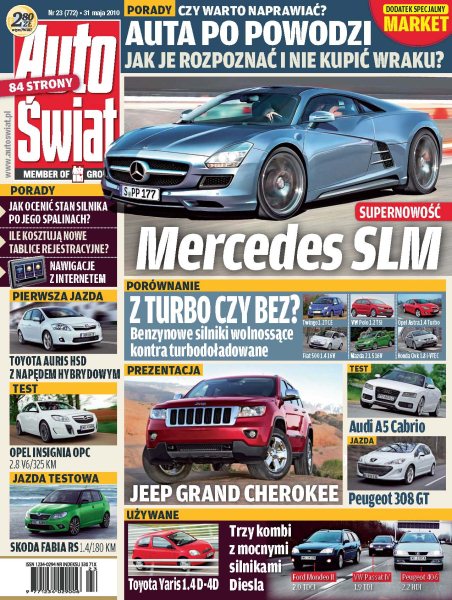Mercedes SLM będzie mniejszym bratem SLS–a – jego premiera odbędzie się w 2015 roku; 21 maja w Detroit rozpoczęła się seryjna produkcja czwartej generacji SUV-a Grand Cherokee; jesienią Toyota wprowadzi do oferty spalinowo-elektryczną wersję Aurisa, tańszą o ponad 10 tys. zł od Priusa; nowa Fabia RS może namieszać konkurencji; co sprawiło, że Mazda MX–5 zdobyła tak olbrzymią sympatię kierowców; na imprezie 4x4 Family Adventure świetnie bawili się i rodzice, i dzieci; Opel Insignia OPC – tego rodzaju połączeniu urody z mocą trudno się oprzeć; ile kosztują nowe tablice; jak ustrzec się przed zakupem auta popowodziowego i jakie wiążą się z tym problemy; czy miejsce wykonywania kontroli radarowej musi być oznakowane.