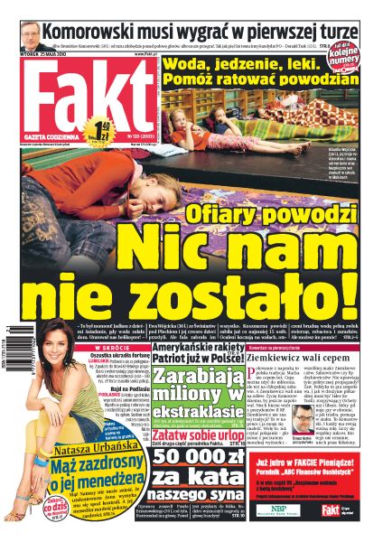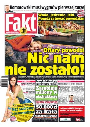 Ofiary powodzi, które straciły wszystko przez żywioł, błagają o pomoc; wsie spustoszone przez powódź wyglądają gorzej niż po wojnie; transport z amerykańskimi rakietami Patriot dotarł do Polski; Roman Polański siedzi w areszcie domowym, a Emmanuelle Seigner bawi się w Polsce; czy Katarzyna Grochola wygra „Taniec z gwiazdami”; prawo do płatnego urlopu i pensji za czas choroby nie zależy od widzimisię pracodawcy; Bronisław Komorowski musi wygrać w pierwszej turze wyborów, bo inaczej przegra wyścig o fotel prezydencki; mąż Nataszy Urbańskiej jest zazdrosny o jej menedżera; Robert Kubica cieszy się z luksusowego prezentu.