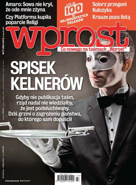 Spisek kelnerów – gdyby nie publikacja taśm, rząd nadal nie wiedziałby, że jest podsłuchiwany – dziś grzmi o zagrożeniu państwa, do którego sam dopuścił; czy Platforma kupiła poparcie Religi – zdobyliśmy jego długi, żeby się wycofał. On wtedy poparł Donalda – Sławomir Nowak na taśmach prawdy zdradził, jak kupowano poparcie kontrkandydata w wyborach prezydenckich; Cameron trafiony – publikacja taśm „Wprost” wzmacnia pozycję Radosława Sikorskiego w Europie, za granicą na aferze najbardziej tracą brytyjski premier i pewien węgierski milioner; zabójcze zaćmienie – jak to możliwe, że ojciec zamknął trzylatkę w gorącym samochodzie – to może zdarzyć się każdemu, bo każdy miewa zaćmienia pamięci prospektywnej; lista 100 najbogatszych Polaków – po raz 25. publikujemy listę najbogatszych Polaków – to najstarsze tego typu zestawienie w polskich mediach, w rankingu - nowe nazwiska, które dołączyły do prestiżowego grona najzamożniejszych, w jego czołówce – zacięta rywalizacja i zmiany.