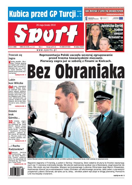 Reprezentacja Polski zaczęła wczoraj zgrupowanie przed trzema meczami towarzyskimi; dziś dwa kluby, z którymi emocjonalnie związany jest Adam Banaś, mają ogromną szansę awansować klasę wyżej; ostatni sprawdzian Argentyny przed mundialem wypadł znakomicie – jedną z bramek strzelił nowy piłkarz Realu Madryt, Angel di Maria; Orlando Magic nie poddali się i w czwartym meczu i z nożem na gardle wreszcie pokonali Boston Celtics; Obraniak odesłany ze zgrupowania kadry do domu; Górnik Zabrze staje przed szansą wywalczenia awansu do Ekstraklasy; reprezentacja Anglii jest przed Mundialem w znakomitej formie; Robert Kubica ostrożnym optymistą przed Grand Prix Turcji.