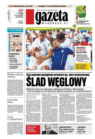Ślad węglowy – ABW zatrzymała wczoraj jednego z najbogatszych Polaków – Marka Falentę, śledczy uważają, że to on mógł zdobyć nagrania podsłuchów od „spółdzielni kelnerów”; Wiedeń z odsieczą Putinowi – „Putin przegrał, nie dla gazu za krew!” – skandowali wczoraj w Wiedniu protestujący przeciw wizycie prezydenta Rosji – Władimir Putin świętował podpisanie umowy o budowie gazociągu South Stream; lista cudów świata – cała Puszcza Białowieska, delta rzeki Okawango w Botswanie, jaskinia Chauveta we Francji – to kilka z kilkunastu niezwykłych miejsc na ziemi dodanych właśnie do Listy Światowego Dziedzictwa UNESCO; García o „Golgota Picnic” – „Ludziom, którzy kupili bilety, możemy oddać pieniądze, ale nie szacunek. Ktoś zadecydował za nich, co wolno im oglądać” – mówi „Wyborczej” Rodrigo García, reżyser spektaklu odwołanego przez dyrekcję festiwalu Malta w Poznaniu po protestach środowisk kościelnych, prawicowych i kibolskich.