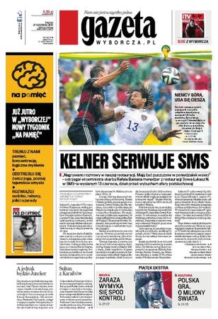 Kelner serwuje sms – „Nagrywano rozmowy w naszej restauracji. Mają być puszczone w poniedziałek w sieci” – ostrzegał wiceministra skarbu Rafała Baniaka menedżer z restauracji Sowa Łukasz N. w SMS-ie wysłanym 13 czerwca, dzień przed wybuchem afery podsłuchowej; a jednak będzie Juncker – zapowiada się spektakularna porażka brytyjskiego premiera Davida Camerona: Jean-Claude Juncker, lewicujący chadek z Luksemburga, prawie na pewno dostanie dziś na szczycie krajów Unii nominację na szefa Komisji Europejskiej; sułtan z Karaibów – jedynowładca Kuby żyje w luksusie otoczony pierścieniem ochrony, kulisy życia Fidela Castro odsłonił w książce o nim były ochroniarz.