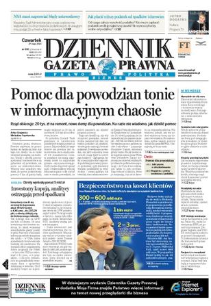 Dziennik Gazeta Prawna – codziennie obiektywne i rzetelne informacje z kraju i ze świata. Piszemy o tym, co dziś ważne i odpowiadamy na Wasze pytania – szczególnie te związane z obecnymi wyzwaniami tj. pandemia, praca zdalna. Na bieżąco wyjaśniamy zmieniające się przepisy. Wspieramy się wyjaśnieniami ministerstw i urzędów. Pomagamy unikać błędów i ostrzegamy, jakie są kary. Ponadto w każdy piątek specjalne magazynowe wydanie Dziennika Gazety Prawnej w całości z tekstami społeczno-ekonomicznymi.