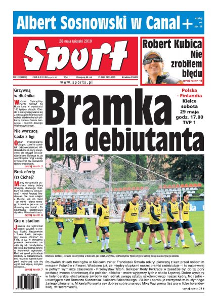 Po dwóch dniach treningów w Kielcach trener Franciszek Smuda odkrył pierwszą z kart przed sobotnim meczem Polaków z Finami; działacze nie rozmawiali z Andrzejem Niedzielanem, więc ten szuka już sobie nowego pracodawcy; w kuluarach mówi się, że Jagiellonia Białystok znów igra z ogniem - negocjuje z zawodnikami, których kontrakty nie wygasną w okresie krótszym niż pół roku; napastnik Olympique Marsylia w debiucie zdobył bramkę, zapewniając reprezentacji zwycięstwo z Kostaryką; tylko dwa zwycięstwa odnieśli reprezentacji Polski w pierwszym dniu turnieju World Tour w Mysłowicach; Canal+ pokaże bezpośrednią relację z walki Alberta Sosnowskiego z Witalijem Kliczką, która odbędzie się w sobotę w Gelsenkirchen.