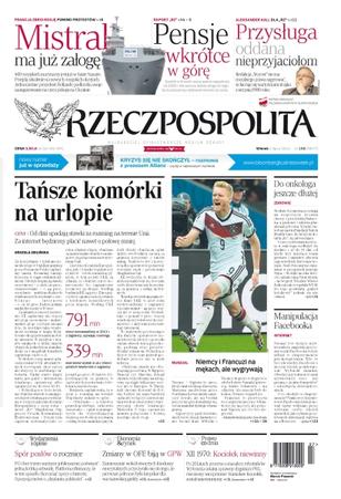 Od dziś spadają stawki za roaming na terenie Unii – za internet będziemy płacić nawet o połowę mniej; PO chce trzem ważnym jubileuszom poświęcić jedną krótką uchwałę; szef MSZ twierdzi, że nagrywający polityków działali w zorganizowanej grupie przestępczej; organy ścigania badały, czy Krystyna Pawłowicz rzeczywiście rzuciła przekleństwem na sali obrad; Moskwa konsekwentnie dąży do zdobycia pozycji arbitra w konflikcie na wschodniej Ukrainie; organizacja Islamskie Państwo Iraku i Lewantu (ISIS) ogłosiła utworzenie kalifatu na zajętych ziemiach; najbliższą planetę podobną do Ziemi odkryli astronomowie – może na niej istnieć życie; Belgia szykuje się na wojnę, USA chcą dziś pokazać, że w drużynie nie ma podziałów na lepszych i gorszych; Francja przeżywała trudne chwile, ale pokonała Nigerię 2:0; Niemcy potrzebowali 120 minut, by pokonać niedocenianą Algierię.