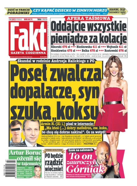 Sikorski, Rostowski, Sienkiewicz, Belka, Bieńkowska – rozmawiali prywatnie, a jedli służbowo; Halicki walczy w Sejmie z dopalaczami, a syn szuka koksu; Marcin Korolec chciał ukryć prywatę; jak władza dzieli nasze pieniądze; Kurscy rozwodzą się piątego sierpnia; czy przyjmie Gowina i Ziobrę; były szef UOP i Agencji Wywiadu nie ma wątpliwości, że zarówno BOR, jak i ministrowie złamali wszelkie procedury; pod Świnoujściem odtajniono kompleks bunkrów dla wojska; czy zimny Bałtyk szkodzi dziecku; urzędniczy absurd w stolicy – 3 miejsca parkingowe dla 100 tysięcy kierowców; puma znów atakuje; Edytę Górniak połączyła bardzo silna więź z Amerykaninem Chesneyem Snowem; legenda Barcelony krytykuje karę nałożoną na Luisa Suareza; Boruc wziął ślub z Sarą; Adamek zmienił zdanie i już nie ma nic przeciwko walce z rodakiem; czy Agnieszce Radwańskiej uda się kiedyś odnieść triumf w wielkim szlemie; Argentyna wygrała 1:0 ze
