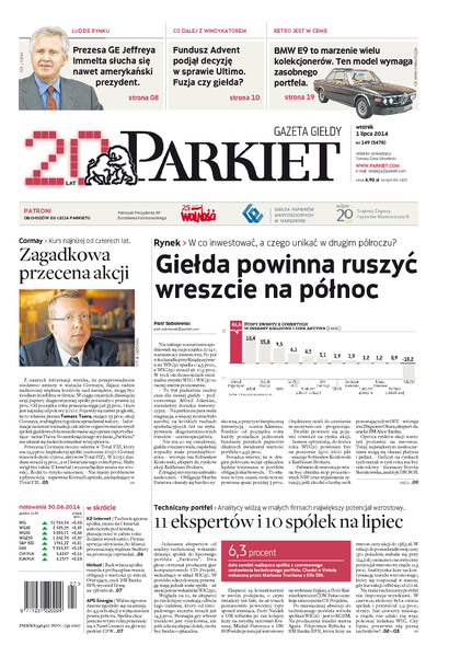 Gazeta Giełdy i Inwestorów Parkiet przyspiesza publikację e-wydania. Od poniedziałku, już od godz. 20.00, można kupić i przeczytać e-wydanie Parkietu, które w wersji papierowej ukaże się dopiero następnego dnia. Parkiet jest więc najświeższą gazetą finansową w Polsce.