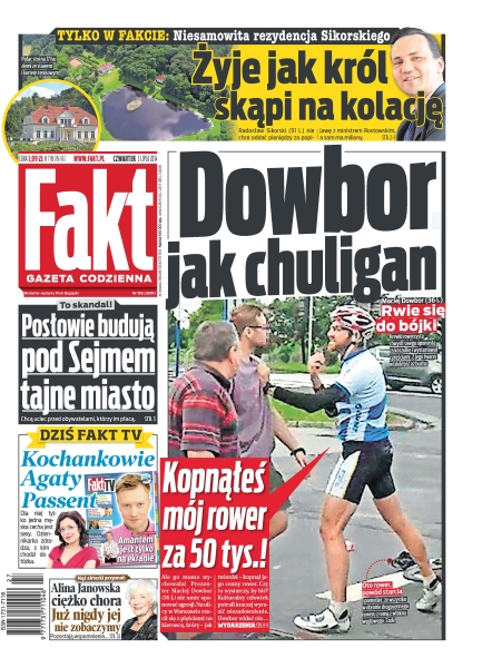 Sikorski żyje jak król, a skąpi na rachunek; Piotr Wawrzynowicz spotyka się z córką miliardera; ponad 1,6 miliona złotych na trzynastki u posłów; synalek posła Halickiego też ma immunitet – nie zrobili mu w domu rewizji; Maciej Dowbor wywołał bójkę na ulicy – wściekły na kierowcę, który rzekomo zepchnął go z drogi; rodzinna tragedia – dziadek miał zawał i wjechał w sklep; okazuje się, że Edyta Górniak nie jest pierwszą polską gwiazdą,