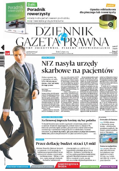 NFZ nasyła urzędy skarbowe na pacjentów – fiskus upomni się o pieniądze od osób, które leczyły się za darmo, choć nie miały do tego prawa; na firmowej imprezie bawimy się bez podatku; przez deflację budżet straci 1,5 mld; 20 proc. firm nie płaci zatrudnionym za dodatkowy czas spędzony w pracy.