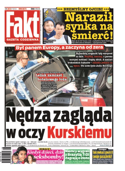 Był panem Europy, a zaczyna od zera – przybity, samotny, z paroma marnymi meblami i kupką ubrań, a zamiast brukselskich frykasów – chińskie jedzenie na wynos, oto nowe życie Jacka Kurskiego; Joanna Jabłczyńska, Kaja Paschalska, Ola Szwed – dziś to symbole seksu; Niemcy wygrali z Brazylią 7:1 – to był mecz do jednej bramki, osłabionej Brazylii Niemcy strzelali gol za golem; taksówkarz gwałcił swoje pasażerki – tylko jednej nocy Sławomir W. zgwałcił jedną kobietę, próbował też zgwałcić drugą.