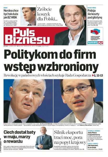 Najbogatszy Polak, Jan Kulczyk chce przekonać rynki finansowe do nowej marki CEED; Szwedzi są zachwyceni Polską, marzy im się u nas naprawdę duży bank na miarę BZ WBK; ekonomiści uspokajają, że lekkie zahamowanie wzrostu gospodarczego to tylko wypadek przy pracy; policja tnie koszty i na samym transporcie zaoszczędziła już 77 mln zł; projekt ustawy o lobbingu Julii Pitery rozpętał burzę.