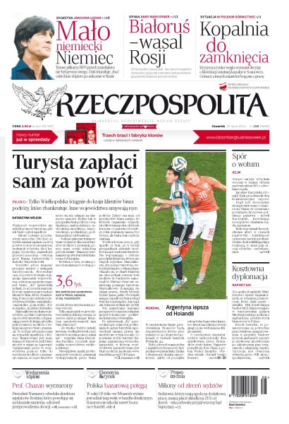 Tylko Wielkopolska ściągnie do kraju klientów biura podróży, które zbankrutuje, inne województwa umywają ręce; prof. Chazan wyrzucony – prezydent Warszawy odwołała dyrektora szpitala św. Rodziny; w całej UE tylko we Włoszech wyższy jest udział targowisk w handlu detalicznym; sędziowie, którzy mają zgodę na dodatkową pracę, muszą płacić składki na ZUS od zleceń; trener piłkarzy RFN przed mundialem nie był pewny swego, dziś triumfuje, choć odetchnie dopiero po sukcesie w finale.