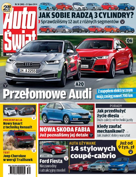 Nowości: elektryczne wersje modeli Audi, nowa Skoda Fabia, Smarty: Fortwo i Forfour, Fiat Panda Cross, Seat Leon ST 4Drive; wiadomości: Mazda 2 w Polsce w lutym 2015 r., Mercedes S 65 AMG, najszybszy Aston Martin roadster, Polacy kupują coraz więcej drogich samochodów, Peugeot 508 od 81 000 zł., 200 KM w Oplu Corsie; testy: 12 samochodów z 3-cylindrowymi silnikami, Jeep Cherokee, Renault Grand Scenic; porady: światła do jazdy dziennej, dobry serwis, czyli jaki, jak jeździć, żeby wydłużyć żywot diesla, gorąca linia; używane: Ford Fiesta (od 2008 r.), najlepsze coupe-cabrio, Land Rover Discovery 3; auto-fascynacje: VW Polo WRC.