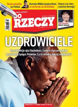 Uzdrowiciele – na rekolekcje ojca Bashobory i innych charyzmatyków przychodzą tysiące Polaków, co to mówi o naszej religijności; świat wściekły na Rosję – zestrzelenie malezyjskiego samolotu może całkowicie zmienić losy konfliktu na Ukrainie – zachodni przywódcy muszą przestać udawać, że cicha wojna na wschodnich rubieżach Europy ich w zasadzie nie dotyczy; jak to z Bonim było – dyskusje na temat policzka, jaki wymierzył Janusz Korwin-Mikke Michałowi Boniemu, zepchnęły na dalszy plan genezę ich sporu, a cała historia zaczęła się podczas nocy teczek w czerwcu 1992 roku; i ty zostaniesz gejem – stan Massachusetts najpierw zezwolił na homośluby, potem na promocję homoseksualizmu w szkołach – w efekcie 50 proc. więcej nastolatków deklaruje homoseksualizm lub nawiązanie stosunków tego typu; szpieg nad głową ministra – bezzałogowe statki latające stają się coraz popularniejsze, dostarczają pizzę i sushi, a wkrótce mają też roznosić paczki – również w Polsce przybywa firm, które wykorzystują drony w interesach oraz pilotów-amatorów.