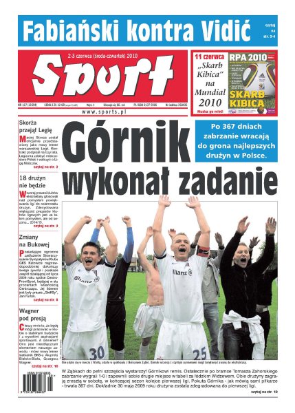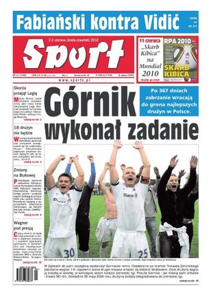 Po 367 dniach nieobecność Górnik Zabrze wraca do grona najlepszych drużyn w Polsce; Maciej Skorża został oficjalnie przedstawiony jako nowy trener warszawskiej Legii; wczoraj prezesi klubów ekstraklasy głosowali nad nowym pomysłem powiększenia ligi do 18 drużyn; dziś wieczorem w Austrii kadra Franciszka Smudy zagra z finalistą mistrzostw świata, reprezentacją Serbii.