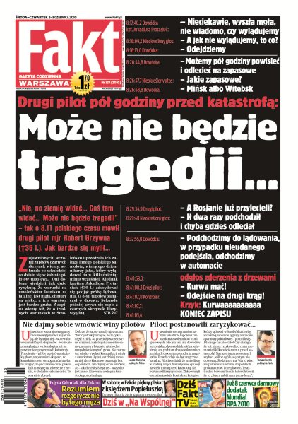 Ujawniono zapisy czarnych skrzynek z prezydenckiego samolotu Tu-154M, który rozbił się pod Smoleńskiem; jak wyglądały ostatnie chwile w kabinie pilotów; Jarosław Kaczyński odmówił udziału w posiedzeniu Rady Bezpieczeństwa Narodowego; jako pierwszy przekazane przez Rosjan dokumenty poznał premier Donald Tusk – jaka była jego reakcja; co nowego do śledztwa w sprawie tragedii wnoszą poznane zapisy; policja przeprowadziła rewizję w samochodzie Radosława Majdana; wywiad z Edytą Górniak.