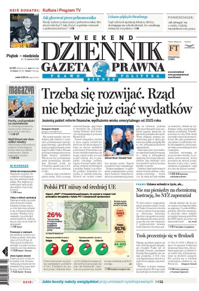 Dziennik Gazeta Prawna – codziennie obiektywne i rzetelne informacje z kraju i ze świata. Piszemy o tym, co dziś ważne i odpowiadamy na Wasze pytania – szczególnie te związane z obecnymi wyzwaniami tj. pandemia, praca zdalna. Na bieżąco wyjaśniamy zmieniające się przepisy. Wspieramy się wyjaśnieniami ministerstw i urzędów. Pomagamy unikać błędów i ostrzegamy, jakie są kary. Ponadto w każdy piątek specjalne magazynowe wydanie Dziennika Gazety Prawnej w całości z tekstami społeczno-ekonomicznymi.