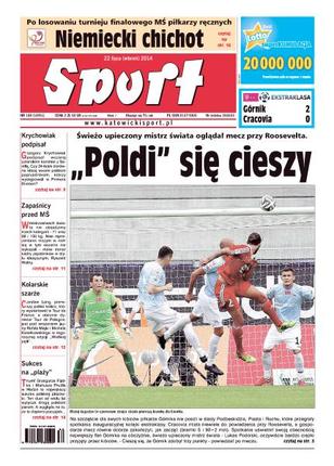 Lukas Podolski, świeżo upieczony mistrz świata, oglądał zwycięski mecz Górnika Zabrze; po losowaniu turnieju finałowego MŚ piłkarzy ręcznych; Grzegorz Krychowiak podpisał czteroletni kontrakt z Sevillą; zapaśnicy przed MŚ; Czesław Lang, pierwszy polski kolarz, który wystartował w Tour de France, a obecnie dyrektor Tour de Pologne, jest pod wrażeniem jazdy Rafała Majki i Michała Kwiatkowskiego w tegorocznej edycji „Wielkiej pętli”; triumf Grzegorza Fijałka i Mariusza Prudla w Hadze to największy sukces polskiej siatkówki plażowej; mistrzostwa świata w szermierce.