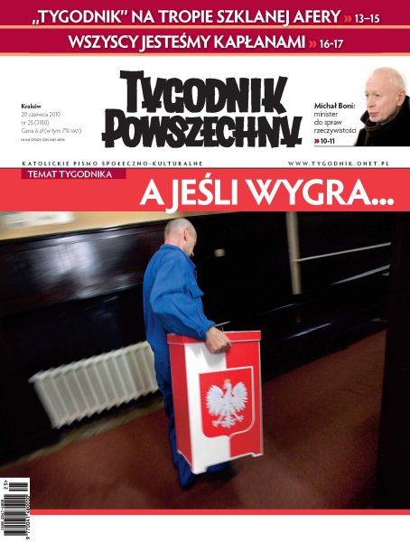 Dwa krytyczne spojrzenia na głównych kandydatów w wyborach prezydenckich; Michał Rychert o istocie kapłaństwa i kapłaństwie powszechnym; reportaż śledczy o oszustwach w branży zajmującej się szkłem jako surowcem wtórnym; Aleksander Kaczorowski analizuje pogarszającą się pozycję Izraela na scenie międzynarodowej; o Polsce po powodzi pisze Przemysław Wilczyński; wychowankowie z Duszpasterstwa Akademickiego u św. Anny wspominają ks. Adama Bonieckiego w jubileusz 50-lecia święceń kapłańskich; Mundial 2010 – felieton Marka Bińczyka; esej Henryka Woźniakowskiego o kulturze, zaufaniu i ich wzajemnej relacji; Piotr Kosiewski o Biennale Sztuki Współczesnej w Berlinie; niezwykła historia Krystyny Chimer, która jako mała dziewczynka przetrwała likwidację lwowskiego getta ukryta w kanałach.