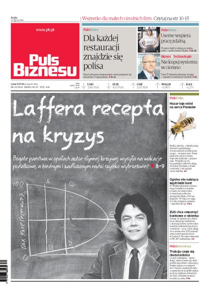 Laffera recepta na kryzys: bogate państwa w opałach autor słynnej krzywej wysyła na wakacje podatkowe, a biednym i zadłużonym radzi szybko wytrzeźwieć; przed zakupem ubezpieczenia dla restauracji warto przyjrzeć się klauzulom i wyłączeniom; Useme wspiera pracę zdalną; nie kupuj systemu w ciemno – testy IT ułatwiają klientom decyzję; Huzar przerabia miód na krem, doprawia imbirem i cynamonem – wszystko po to, żeby poszerzyć rynkową niszę; system Ognivo nie nakręca wędrówki kont w Polsce; ZUS chce otworzyć bankowe e-okienka; Trakcja PRKIL czuje się niedoceniona przez analityków.