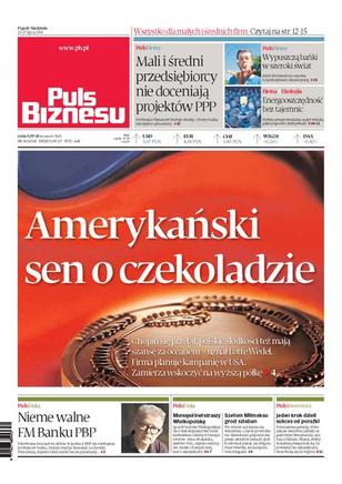 Amerykański sen o czekoladzie: Lotte Wedel planuje kampanię w USA; mali i średni przedsiębiorcy nie doceniają projektów PPP; polskie bańki mydlane idą w szeroki świat: ; energooszczędność bez tajemnic: dobrze przeprowadzony audyt wskaże, gdzie poprawić efektywność; nieme walne FM Banku PBP; monopol Inei straszy Wielkopolskę; zarządem Milmeksu zajmie się sąd; funduszowe gwiazdy, które jeszcze niedawno jaśniały na giełdowym firmamencie, spadają z hukiem, a klienci, którzy wcześniej przepychali się, by powierzyć im oszczędności, teraz tłoczą się do wyjścia.