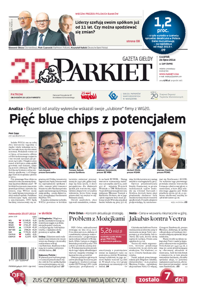 Największy w Polsce newsroom gospodarczy zbiera, analizuje i zgłębia dla Państwa najważniejsze informacje ze świata finansów. Codzienne wydanie „Parkietu”, sześć dni w tygodniu, to kilkadziesiąt artykułów o emitentach, instytucjach finansowych, gospodarce. To również opinie, felietony i wywiady z najważniejszymi ludźmi krajowej i globalnej finansjery.