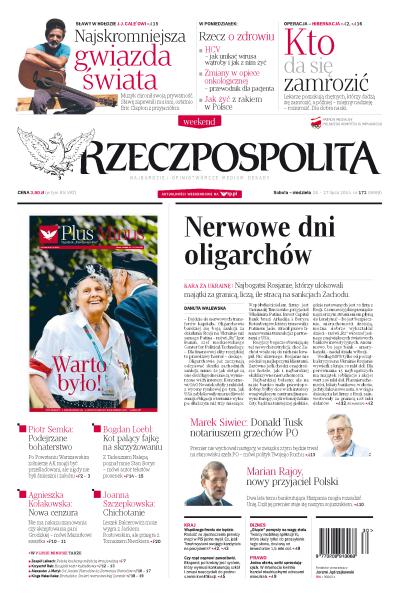 Nerwowe dni oligarchów: najbogatsi Rosjanie, którzy ulokowali majątki za granicą, liczą, ile stracą na sankcjach Zachodu; premier nie wychował następcy, w związku z tym będzie trwał na stanowisku szefa PO – uważa Marek Siwiec; dwa lata temu bankrutująca Hiszpania mogła rozsadzić Unię, dziś jej premier staje się naszym sojusznikiem; lekarze poszukują chętnych, którzy dadzą się zamrozić, a później – miejmy nadzieję – rozmrozić; wspólnego frontu nie będzie, bo radość ze zjednoczenia prawicy mąci w PiS jedna myśl: co, jeśli Toruń wystawi swojego kandydata na prezydenta?; czy rząd naprawi zawodówki – eksperci: potrzebny jest system, który wymusi konkurencję szkół i zmusi nauczycieli do podnoszenia kwalifikacji; „głupie” pomysły na wagę złota: twórcy mobilnej aplikacji Yo, która służy tylko do przesyłania tego słowa, dostaną od inwestorów 1,5 mln dol; jedna oferta, setki sprzedających – w internecie kwitnie handel nieaktualnymi adresami mieszkań.