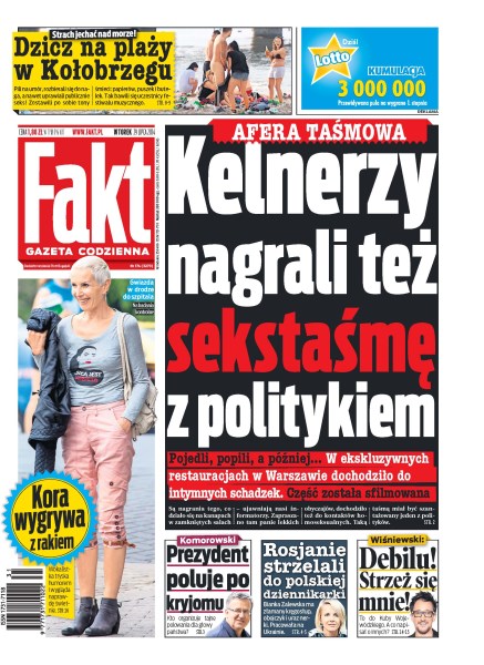 Dzicz na plaży w Kołobrzegu – pili na umór, rozbierali się do naga, a nawet uprawiali publicznie seks; afera taśmowa – kelnerzy nagrali też sekstaśmę z politykiem; Kora wygrywa walkę z rakiem; prezydent poluje po kryjomu – kto organizuje tajne polowania dla głowy pastwa; Bianka Zalewska ma złamany kręgosłup, obojczyk i uraz nerki – pracowała na Ukrainie.