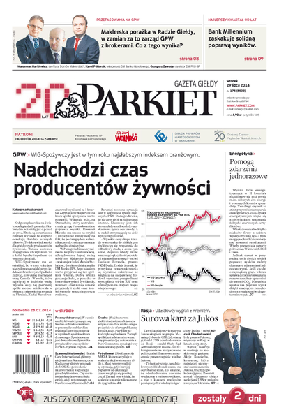Największy w Polsce newsroom gospodarczy zbiera, analizuje i zgłębia dla Państwa najważniejsze informacje ze świata finansów. Codzienne wydanie „Parkietu”, sześć dni w tygodniu, to kilkadziesiąt artykułów o emitentach, instytucjach finansowych, gospodarce. To również opinie, felietony i wywiady z najważniejszymi ludźmi krajowej i globalnej finansjery.
