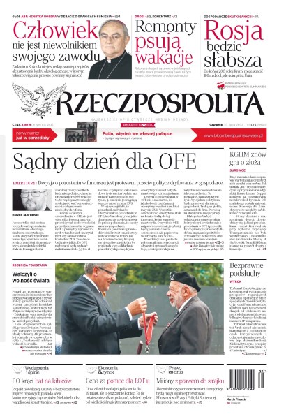 Sądny dzień dla OFE – decyzja o pozostaniu w funduszu jest protestem przeciw polityce dryfowania w gospodarce; KGHM znów gra o złoża – rząd zmienia zdanie w sprawie wartych miliardy złotych złóż miedzi oraz srebra; Trybunał Konstytucyjny zakwestionował wczoraj część przepisów regulujących działania operacyjne służb specjalnych; PO kręci bat na kibiców; cena za pomoc dla LOT-u.