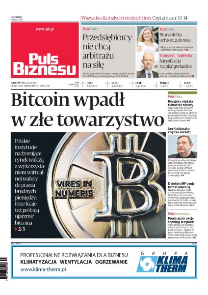 Przedsiębiorcy nie chcą arbitrażu na siłę – resort gospodarki zamierza ustawą zachęcić biznes do polubownego rozstrzygania sporów; ocena e-sklepu zależy od jakości dostawy — mówi Jacek Olszewski; Bitcoin wpadł w złe towarzystwo; rosyjska odpłata Polski nie rozłoży; Jan Kościuszko chętnie doradzi; Deloitte: MF psuje klimat klauzulą; funduszom akcje topnieją w rękach.