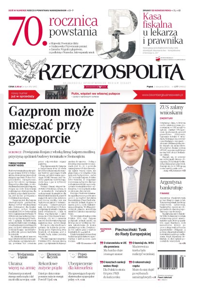 Gazprom może mieszać przy gazoporcie – powiązania Rosjan z włoską firmą Saipem możliwą przyczyną opóźnień budowy terminalu w Świnoujściu; ZUS zalany wnioskami; Argentyna bankrutuje; Ukraina: więcej na armię; rekordowe zużycie prądu; dla uprawiających sporty ekstremalne są specjalne polisy ubezpieczeniowe; rozmowa – Piechociński: Tusk do Rady Europejskiej.