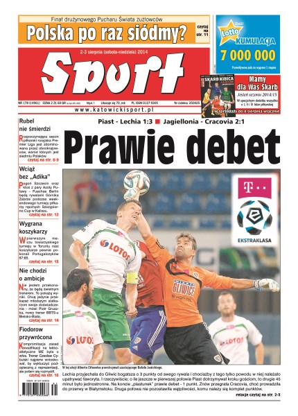 Finał drużynowego Pucharu Świata żużlowców; rozpoczynająca sezon piłkarski rosyjska Premier Liga jest zdominowana przez obcokrajowców, wśród których jest siedmiu Polaków; pogoń Szczecin oraz ktoś z pary Azoty Puławy - Fuechse Berlin będą rywalami Górnika Zabrze; w pierwszym meczu towarzyskiego turnieju w Toruniu nasi koszykarze pewnie pokonali Portugalczyków 87:65; znów przegrała Cracovia, choć prowadziła do przerwy w Białymstoku.