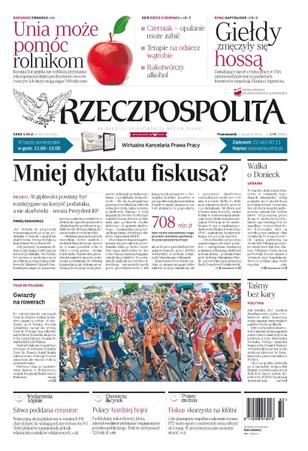 Wątpliwości powinny być rozstrzygane na korzyść podatnika, a nie skarbówki – uważa Prezydent RP; wakacyjną akcją plakatową w miastach PiS chce dotrzeć do wahających się wyborców PO; ponad 80 procent absolwentów szkół wyższych dostaje stały etat; Ukraińcy kupują bliskim hełmy, kamizelki i elementy uzbrojenia; zamiłowanie do opalania może kosztować życie – lekarze apelują, by kontrolować skórę; rak wątroby nie musi oznaczać śmiertelnego wyroku, również w Polsce; ukraińska armia otoczyła Donieck – szturm rozstrzygnie o wyniku wojny między Moskwą i Kijowem; Izrael wycofuje się z operacji w Strefie Gazy, ale nie zamierza negocjować z Hamasem w Kairze; w Norwegii przy okazji 41. olimpiady o stanowisko szefa Międzynarodowej Federacji Szachowej ostro grają Garri Kasparow i Kirsan Ilumżynow.
