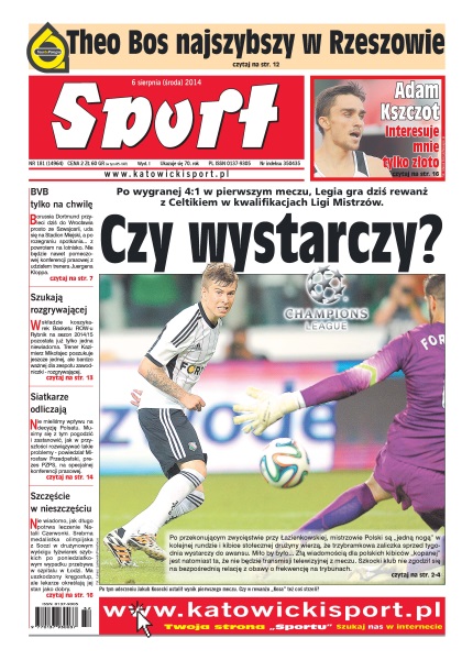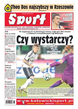 Po wygranej 4:1 w pierwszym meczu, Legia gra dziś rewanż z Celtikiem w kwalifikacjach Ligi Mistrzów; w czterech ostatnich sezonach zabrzanie w trzech rozpoczynających kolejkach doznali ledwie jednej porażki; Borussia Dortmund przyleci dziś do Wrocławia prosto ze Szwajcarii, uda się na Stadion Miejski, a po rozegraniu spotkania z powrotem na lotnisko; Agnieszka Radwańska po trudnym meczu pokonała Barborę Zahlavovą-Strycovą; w Rzeszowie na mecie trzeciego etapu pasjonującą walkę o zwycięstwo stoczyli najlepsi sprinterzy w peletonie.