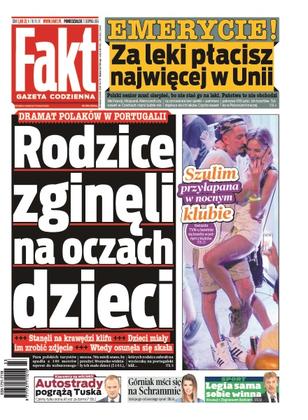 Polacy jadący w weekend A4 płacili za stanie w korku; dlaczego płacimy za leki najwięcej w Europie; Kaczyński nie wybaczy Kurskiemu rozwodu; senatorowie za 2 miesiące wakacji dostaną 2,4 mln zł; dramat na wakacjach - Polacy zginęli w Portugalii; Edyta Górniak mści się na Schrammie; Agnieszka Szulim spędziła noc w jednym z modnych warszawskich klubów; Krawczyk spotyka się z dziećmi w hotelu; prezes PZPN próbował interweniować w sprawie Legii