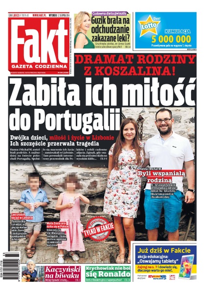 Prezes PiS ruszył na urlop - będzie odpoczywał gdzieś w głuszy; Rosjanie nie kupują w polskich sklepach; PO i PiS wydały 1,4 mln zł na sondaże; Kalisz wziął cudze dziecko na wakacje; rodzice spadli ze skały na oczach dzieci; krwawe porachunki w komisie; czy Guzik brała zakazane leki na odchudzanie; Jarosińska opala się bez stanika; pomocnik reprezentacji Polski i Sevilli dzisiaj w meczu z Realem