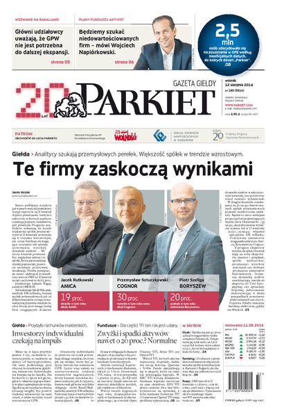 Największy w Polsce newsroom gospodarczy zbiera, analizuje i zgłębia dla Państwa najważniejsze informacje ze świata finansów. Codzienne wydanie „Parkietu”, sześć dni w tygodniu, to kilkadziesiąt artykułów o emitentach, instytucjach finansowych, gospodarce. To również opinie, felietony i wywiady z najważniejszymi ludźmi krajowej i globalnej finansjery.