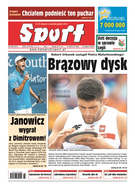 Polski bohater meczu o Superpuchar Niemiec - zdecydowanie Łukasz Piszczek, który zagrał świetny mecz i zaliczył asystę przy golu na 2:0; Polacy wykonali zadanie i rozgromili Luksemburg - po dwóch meczach mają komplet punktów; w piątek i sobotę Koszalin będzie gospodarzem Final Four II dywizji World Grand Prix; wczoraj sędziowie znów - tak jak na igrzyskach w Londynie - pomylili się przy rzucie Betty Heidler, najgroźniejszej rywalki polskiej młociarki; nie Piotr Małachowski, ale jego bliski kolega Robert Urbanek zdobył medal w dysku - drugi dla Polski w mistrzostwach Europy; Jarosław Hampel i Krzysztof Kasprzak walczyć będą w sobotę w Grand Prix Łotwy w Rydze.