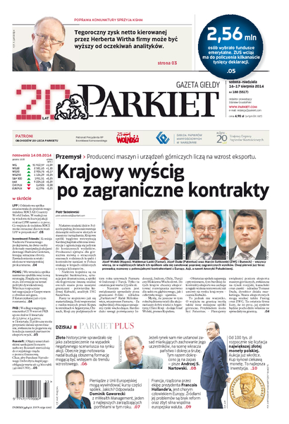 Największy w Polsce newsroom gospodarczy zbiera, analizuje i zgłębia dla Państwa najważniejsze informacje ze świata finansów. Codzienne wydanie „Parkietu”, sześć dni w tygodniu, to kilkadziesiąt artykułów o emitentach, instytucjach finansowych, gospodarce. To również opinie, felietony i wywiady z najważniejszymi ludźmi krajowej i globalnej finansjery.