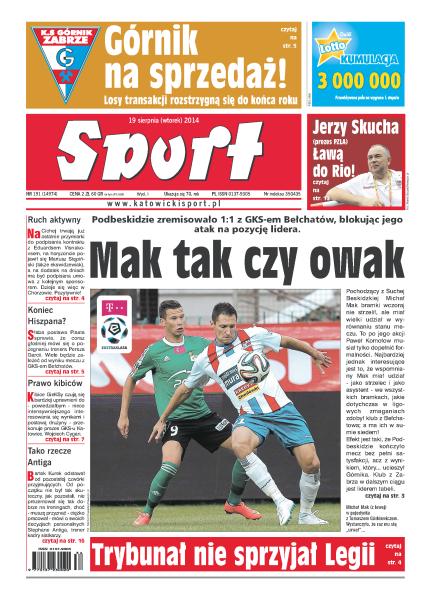 Podbeskidzie zremisowało 1:1 z GKS-em Bełchatów, blokując jego atak na pozycję lidera; Górnik na sprzedaż – losy transakcji rozstrzygną się do końca roku; Trybunał Arbitrażowy ds. Sportu odrzucił wniosek Legii o warunkowe dopuszczenie do dalszej gry w eliminacjach Ligi Mistrzów; Ruch jest aktywny: podpisuje nowe kontrakty i pozyskuje sponsora; słaba postawa Piasta sprawia, że coraz głośniej mówi się o zmianie trenera; Stephane Antiga motywuje swoją decyzję o odsunięciu od kadry Bartosza Kurka.
