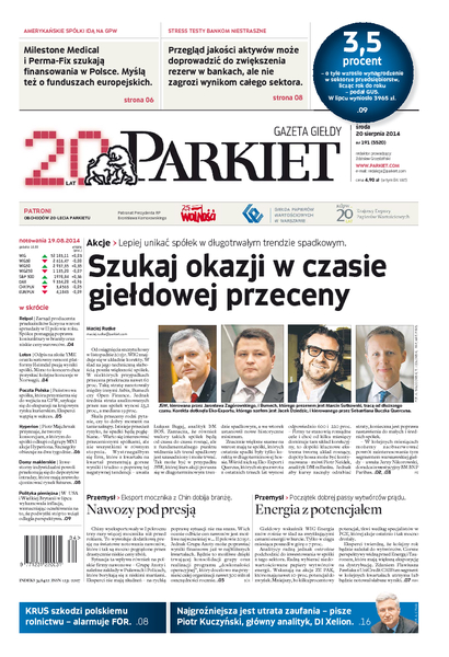 Największy w Polsce newsroom gospodarczy zbiera, analizuje i zgłębia dla Państwa najważniejsze informacje ze świata finansów. Codzienne wydanie „Parkietu”, sześć dni w tygodniu, to kilkadziesiąt artykułów o emitentach, instytucjach finansowych, gospodarce. To również opinie, felietony i wywiady z najważniejszymi ludźmi krajowej i globalnej finansjery.