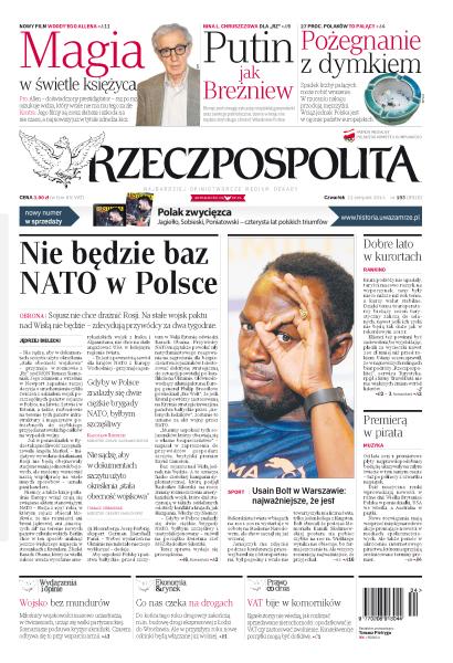 Nie będzie baz NATO w Polsce; dobre lato w kurortach: biura podróży nie upadały, turyści masowo ruszyli na wypoczynek, ceny były nieco niższe niż rok temu, a kursy walut stabilne; wojsko bez mundurów: miłośnicy wojskowości masowo uczestniczą w ćwiczeniach, ucząc się walki partyzanckie; do końca tego roku drogowcy zakończą m.in. budowę drogi ekspresowej z Łodzi do Wrocławia, ale w przyszłym roku nowe odcinki będą włączane już wolniej; VAT bije w komorników: egzekutorzy nie wiedzą, jak rozliczać sprzedawane nieruchomości: opodatkować je VAT czy zastosować zwolnienie, a konsekwencje pomyłki mogą być dotkliwe; premierą w pirata: od lata 2015 r. premierowe płyty najprawdopodobniej będą się ukazywały na całym świecie w tym samym czasie – tuż po północy z czwartku na piątek; Usain Bolt w Warszawie: najważniejsze, że jest; spadek liczby palących może robić wrażenie, w rzucaniu nałogu przodują mężczyźni, wciąż jednak Polska jest w ogonie państw europejskich.