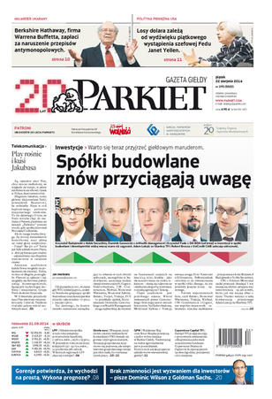 Największy w Polsce newsroom gospodarczy zbiera, analizuje i zgłębia dla Państwa najważniejsze informacje ze świata finansów. Codzienne wydanie „Parkietu”, sześć dni w tygodniu, to kilkadziesiąt artykułów o emitentach, instytucjach finansowych, gospodarce. To również opinie, felietony i wywiady z najważniejszymi ludźmi krajowej i globalnej finansjery.