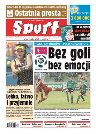 Bez goli bez emocji – wczorajszy mecz GKS-u Bełchatów z Piastem Gliwice był pojedynkiem zespołu niepokonanego w tym sezonie z drużyną, która nie wygrała jeszcze żadnego spotkania; lekko, łatwo i przyjemnie – błyskawiczny awans Agnieszki Radwańskiej; rozstanie z Bednarzem – rada nadzorcza odwołała wczoraj z funkcji prezesa Jacka Bednarza, który od pół roku był w konflikcie z kibicami; Tytoń nie wystarczył – w ligowym debiucie polski bramkarz przepuścił trzy gole na Camp Nou, ale w meczu z Barceloną i tak był najlepszym piłkarzem Elche; wygrał, został liderem – start w Kadyksie do wczorajszego etapu nastąpił w porcie wojennym z... pokładu lotniskowca.